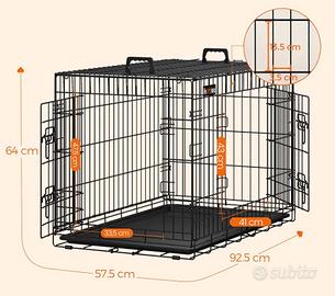 Kennel in metallo nero con 2 porte, vassoio removibile misure 92,5 x 57,5 x 64 cm adattao per cani di peso da 18 a 32 kg, confezione originale