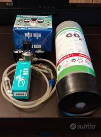 Vendo kit completo CO2 per acquario, composto da: bombola mai usata da 1,3 kg con base, riduttore di pressione con 2 manometri AQUILI, diffusore AQPET ZEN misura Large, contabolle e valvola di non ritorno.
