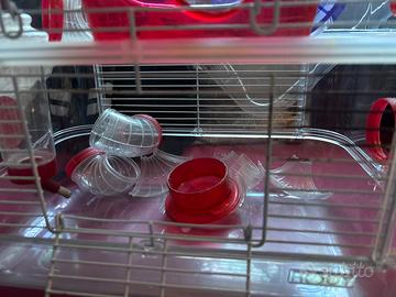 -Gabbietta usurata due livelli, ruota, gabbiotto bagno, pipetta per il bere, tunnel.