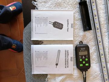 causa cambio acquario con più grande vendo bellissimo kit illuminazione completo di centralina Tetra LightWave Timer per effetti alba-tramonto accensione , spegnimento led ecc. , n. 2 barre led Tetra 720 complete di accessori per montaggio in sostituzione di neon e con possibilità di variare dimensione di appoggio da cm. 72 a cm. 80 , il tutto corredato da relativi manuali di istruzioni.