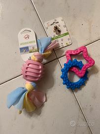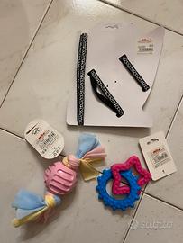 * Giocattoli per animali: Include un gioco in corda con una pallina di gomma rosa e altri giochi in plastica colorata a forma di stella.