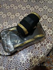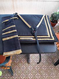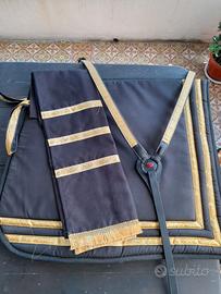 Vendi kit spagnolo sottosella pettorale sciarpa e fasce elastiche nero oro adatto a sfilate e spettacoli..mai usato come nuovo.
