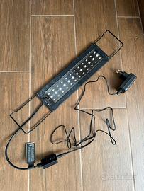 Vendo lampada per acquario con luci a LED di marca Necrew, doatata anche del telecomando per controllarla. La lampada riproduce il ritmo circadiano e funziona 24 ore su 24, replicando tutto il ciclo di luce che va dall'alba al tramonto (e c'è anche la luce notturna). Bisogna solo pulirla un po' perche c'è un po' di calcare, si vede in foto.