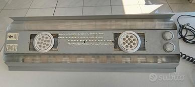 vendo splendida lampada Arcadia 3, per chi è del settore saprà che è una lampada di altissima qualità di manifattura, originalmente montava 2 HQI da 250w, è stata modificata con impiantistica led di alta efficienza dedicato per il marino, misure 110P*39L, ha due timer incorporati per la gestione separata dei bianche e dei blu, per la simulazione dell'alba e tramonto