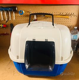 Lettiera per gatto medio grande, paletta inclusa e spazio per filtro odori. Interno usurato dalla sabbietta non sporco. Misure 46cm circa di altezza 50 cm circa di larghezza