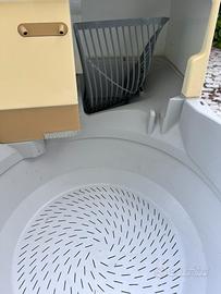 Vendo lettiera completamente automatica CatGenie. Funziona perfettamente. La vendo perchè uno dei miei 4 gatti non la utilizza, quindi non ha senso tenerla in quanto devo usare anche una lettiera normale. Lava i sassolini da sola, butta i bisogni nello scarico della lavatrice oppure nel wc, e li asciuga con aria calda. La pulizia si puo programmare o dopo che il gatto ha fatto i bisogni, oppure un determinato numero di volte al giorno . Insieme alla lettiera, ci sono anche 2 confezioni di sassolini, 3 scatole di detergente, che con ognuna si fanno 120 lavaggi, e una scatola di lavaggio per la manutenzione che si fa ogni tanto. Siccome è un oggetto ingombrante, preferisco consegna a mano per essere sicuro che non si rompa durante il trasporto.