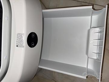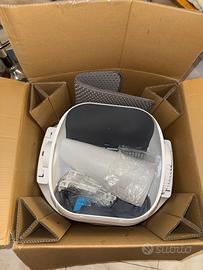 Lettiera NUOVA marchio ELLEPENT, completa di tutti gli accessori Peso 8-9 kg •Lettiera Autopulente e Senza Paletta: Sistema automatizzato che avvia la pulizia dopo l’uso del gatto, raccogliendo i residui in un contenitore sigillato. Capacità del serbatoio da 9L per 10 giorni di utilizzo (1 gatto). •Controllo Odori Avanzato: Struttura in ABS con coperchio ermetico e gel deodorante integrato per trattenere odori e mantenere l’ambiente fresco. •Design Aperto per Comfort: Maggiore visibilità e libertà di movimento per il gatto, ideale per gatti di taglia grande o per transizione da lettiera tradizionale. •Sensori di Sicurezza e App Smart: Sensori infrarossi e di peso per fermare il ciclo di pulizia se il gatto entra. Connessione Wi-Fi 2.4 GHz per monitorare l’utilizzo e le abitudini tramite app. •Facile Manutenzione e Pronta all’Uso: Pre-assemblata, basta collegarla e aggiungere la sabbia. Sistema di sostituzione sabbia integrato, con sacchetti, telo impermeabile e tappetino inclusi. •Kit Accessori Inclusi: 1 deodorante per lettiera, 1 tappetino impermeabile, 1 tappetino di ricambio Istruzioni e manuale •Dimensioni Compatte: 54L x 50l x 55H cm, adatta per spazi di varie dimensioni senza compromettere funzionalità e comfort.