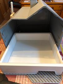 Vendo lettiera a forma di casetta per gatti, chiusa con ingresso flottante, pratico cassettone ad estrazione e tappetino raccogli sassolini . Praticamente Nuova.
