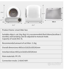 Lettiera Gatto Autopulente Automatica con Controllo App, WiFi,con Sacchi Spazzatura/Tappetino. Ancora in garanzia e in condizioni ottime