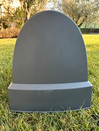 Lettiera gatto chiusa con sportellino, vassoio sanitario estraibile, vano porta sacchetti, paletta e filtro anti odori. Misure 40 per 46 per 42 cm.