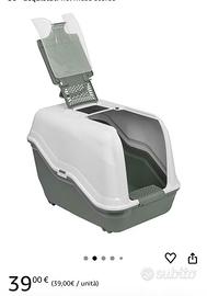 Vendo, praticamente a metà del prezzo di acquisto, lettiera gatto chiusa NUOVA MAI USATA. Troppo grande per il mio gatto. Modello:” Lettiera per gatti XXL NETTA MAXI bianco/verde specifica per gatti di razza grande”. Non ho scatola di imballaggio.