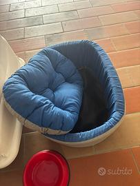 Vendo vaschetta e copertura lettiera per gatto e cuccetta e ciotola.