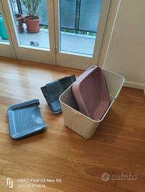 Lettiera gatto anti odore e facile da pulire, il vostro micio avrà molta privacy con la porticina basculante. La sabbia, qualsiasi essa sia, non si attacca alle zampe grazie al ripiano sagomato appositamente. Inoltro regalo anche una semplice lettiera aperta (quella rosa presente nell'ultima foto).
