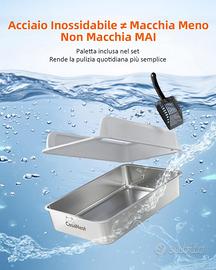 - Superficie interna liscia e antiaderente che impedisce ai residui di attaccarsi e facilita la pulizia.
