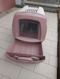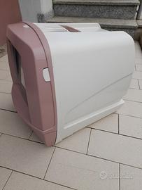 Lettiera per gatti marca MPS made in Italy con sportellino ingresso mobile, cassettino sabbietta estraibile completo di palettina ed aerazione con filtro.