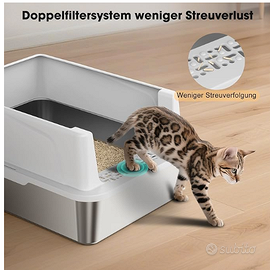 44 x 34 x 21 cmCostruzione in acciaio inossidabile di alta qualità: realizzata in acciaio inossidabile di alta qualità, questa lettiera per gatti offre una durata eccezionale ed è facile da pulire. Resiste alla ruggine e ai graffi causati dagli artigli del gatto, previene gli odori e aiuta a mantenere fresca l'aria della tua casa. Il design robusto garantisce un utilizzo affidabile per molti anni e riduce al minimo le frequenti sostituzioni. Mantenere una zona pulita per lettiera: questa lettiera per gatti in acciaio inox con coperchio è progettata per soddisfare le esigenze dei gatti: offre uno spazio privato e impedisce efficacemente la diffusione di lettiere. Inoltre, un pedale del filtro anti-tracking Protezione dalle perdite di urina ad alta parete: il coperchio superiore di questa lettiera in metallo è saldamente collegato alla vasca in acciaio inox tramite un lucchetto migliorato, così l'urina rimane nella lettiera. Perfetto per i gatti che fanno pipì o calpestano la lettiera. Questo mantiene la vostra casa pulita e priva di odori senza il rischio di perdite di urina. Soddisfa tutte le esigenze dei gattini: questa lettiera è appositamente progettata per gatti o gattini appena nati ed è adatta anche per altri piccoli animali domestici, offrendo uno spazio privato. È possibile posizionare la lettiera per gatti in aree strette o limitate. Se vuoi dare al tuo gattino spazio extra per assicurarti che rimanga felice, questa taglia è una scelta eccellente! Facile da pulire e non appiccicoso: la lettiera per gattini dispone di una superficie antiruggine non adesiva che è facile da pulire. Basta sciacquare con acqua per rimuovere facilmente i rifiuti. A differenza della tradizionale lettiera in plastica, questa lettiera per gatti in acciaio inox ha una superficie liscia, comoda per il tuo gatto e non trattiene residui o odori, mantenendo l'aria interna fresca. Fornisce al tuo gatto un luogo pulito e sano per stare comodo.