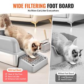 Evita la fuoriuscita di lettiera: questa lettiera per gatti è dotata di un'ampia pedana filtrante che facilita la pulizia del pavimento. La lettiera si adatta anche a gatti diversi, in particolare a gatti anziani e gatti con zampe corte.