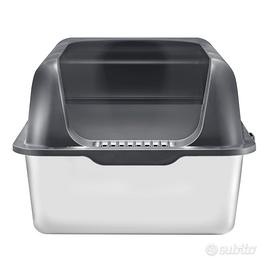 Inodore e facile da pulire: il coperchio superiore e la vaschetta sono fissati saldamente con un collegamento a scatto per evitare perdite. Le pareti alte e curve eliminano le aree difficili da raggiungere, assicurando che non rimanga lettiera per gatti negli angoli. Inoltre, è inclusa una paletta di metallo a manico lungo per una maggiore praticità.