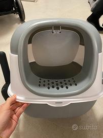 Cuccia per gatti multifunzione, spaziosa e confortevole, dotata di zona pappa integrata, paletta per la lettiera, sistema anti-odore,