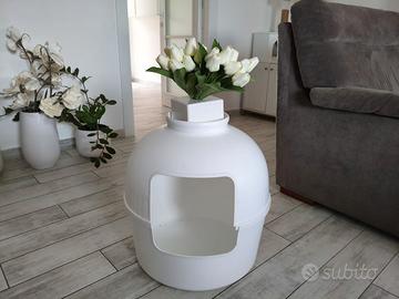 Esclusiva lettiera XXL, che non sembra una lettiera e può essere posizionata in modo discreto ovunque in casa Puoi farlo facilmente a tuo piacimento posizionando una pianta su di essa in modo che sporga a malapena nella stanza. (la pianta nella foto non è inclusa) Grazie alla sua forma ovale e all'ampio ingresso e al coperchio rimovibile, è molto facile da pulire. Grazie alle sue dimensioni (51 cm di diametro e 55 cm di altezza), è adatto anche per gatti più grandi.