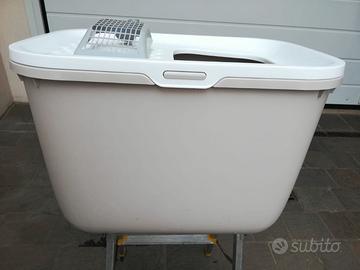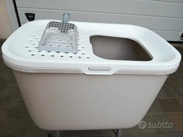 Vendo spaziosa toilette per gatti con ampia entrata dall'alto, ribalta perforata rimovibile e calpestabile, ermetica, facile da pulire,Mis.: L 58 x P 38,5 x H 39,5 cm Ritiro in loco