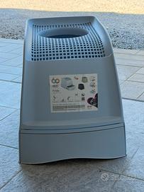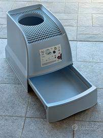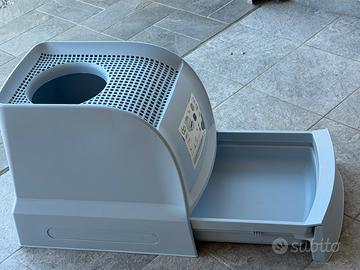 Lettiera per gatto con ingresso dall’alto,mai utilizzata ancora con adesivo di vendita; Ottima per avere sempre pulito senza residui di sabbietta in giro; Comoda da pulire,con cassettino estraibile nella parte inferiore.