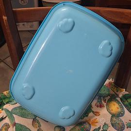Graziosa lettiera azzurra, semplice e leggera, in plastica lucida molto resistente.