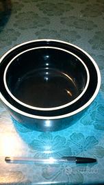 2 ciotole in coccio di colore nero con bordino bianco.