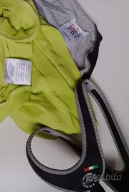 2 T-Shirt per cani taglia M con dietro, realizzato con perline, il disegno dei pirati e davanti la scritta con brillantini in sigla I LOVE MY PET: una verde fluo e una grigia - il tessuto è al 95 percento in cotone - marca "I love my Pet" - misura dal collo alla coda circa 33 cm (v. foto) - inoltre verrà consegnata anche una pettorina in plastica colore nero con bordo rifrangente marca Tre Ponti - Made in Italy -