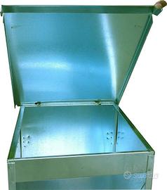 Mangiatoia a tramoggia per cani circa kg 25 in lamiera zincata.