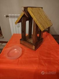 Vendo mangiatoia/abbeveratoio per uccelli selvatici artigianale con tetto rivestito in bambù impregnato.