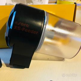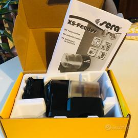 Mangiata automatica Sera XS-Feeder. Installazione facile e veloce sull'acquario, colore nero, recipiente di 150ml, 6 regolazioni di porzionatura, rilascio di cibo 2 volte al giorno, funzionamento a batterie non incluse.
