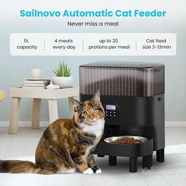 Sailvono Mangiatoia automatica per gatti, controllo temporizzato 1-4 pasti al giorno, registratore vocale 10s per animali di piccola e media taglia, nero, 5 l