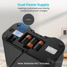 Facile da configurare e programmabile: mangiatoia automatica per gatti 2 ciotole, schermo LCD integrato, può essere programmato in modo flessibile, fino a 4 pasti ogni giorno a orari pianificati, fino a 9 porzioni per pasto (1/8 tazza/2 cucchiai per ogni porzione). La mangiatoia automatica per gatti è dotata anche di un pulsante di alimentazione manuale per premiare facilmente il vostro animale domestico.