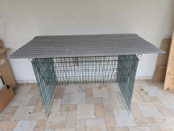 Mangiatoia fai da te per animali. Robusta e realizzata in modo da proteggere il fieno dalla pioggia che arriva anche di stravento o di traverso. La base si può conficcare facilmente nel terreno per resistere bene a forti venti.