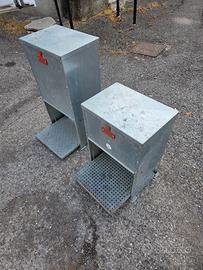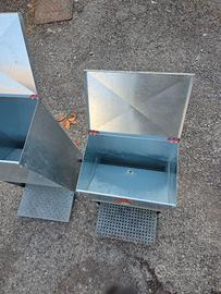 2 Mangiatoie per polli e galline antitopo e antipioggia, si apre lo sportello della Mangiatoia quando la gallina sale sulla pedana. Regolabile la quantità di cibo che si desidera annullando lo spreco. Il prezzo è per 2 mangiatoie.