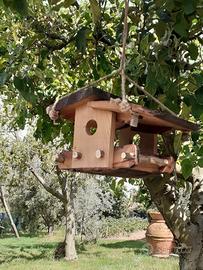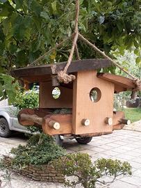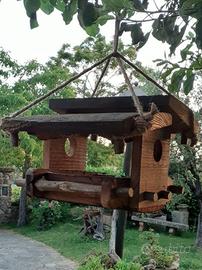 Dai un tocco di stile e sostenibilità al tuo spazio verde con questa mangiatoia per uccellini realizzata a mano con legno di recupero di botti da vino.