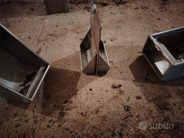 Vendo per inutilizzo 20 mangiatoie in acciaio inox per gabbie sala parto e altre 20 mangiatoie più piccole per suinetti in sala parto, prezzo 1500 euro trattabili