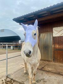 Leggere tutto: Vendo maschera per cavalli per montare fatta a mano, i miei clienti si trovano meglio con questa rispetto alle solite perché non da fastidio ai cavalli *Nella seconda foto c'è l'esempio di com'è la maschera (colore non disponibile)* Misura: Full