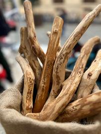 Masticativi per cani, lavorati a mano, personalizzati, in legno d’olivo italiano. Disponibili in varie misure: da 20€ a 30€.