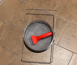 3 melari con telaini costruiti, trasformatore per armare i telaini, filtro acciaio con forchetta, rifrattometro, telaini da melario con cera.