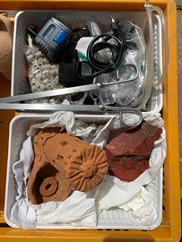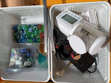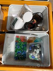 svendo accessori vari per allestimento acquari come da foto: quarzi da fondo, pompe aria e acqua, sifone per pulizia fondo, magneti da vetro, materiale filtrante, addobbi vari, mangiatoia automatica, ...