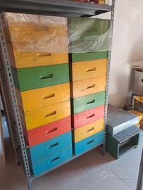 Per cessata attività vendo il seguente materiale, tutto in buonissimo stato, perfetto per intraprendere l'attività: - 14 melari da 10 telai costruiti, già fumigati: 15 €/cad (pronti per la nuova stagione di raccolta) - 2 melari da 10 telai vuoti (solo cassa ext): 8 €/cad - 13 melari da 10 telai completi di telai costruiti (dato che la cera è vecchia, sarebbe necessario pulire i telai e riposizionare un nuovo foglio cereo): 5 €/cad - 9 nutritori circolari da 1 lt, in discrete condizioni: 1,50 €/cad - 1 confezione da 1 kg di pastiglie zolfo: 12 € (usate solo 6 pastiglie, praticamente confezione nuova) - 1 confezione nuova da 5 kg di fogli cerei da nido: 60 € - 1 maturatore da 35 l inox: 60 € - 1 maturatore Lega 100 inox: 140 € - 1 maturatore 200 l inox: 180 € - 8 pannelli di chiusura ingresso arnie per trasporto (misure 40x23 cm telaio in legno + rete metallica): 5 €/cad - 2 cassette plastica raccogli polline nuove: 10 €/cad - 40 telai in legno x nido nuovi: 35 €/ blocco - 9 reti escludi regina (misure 49,5x42,5 cm telaio in legno + rete metallica): 12 €/cad - 9 apiscampo plastica nuovi: 1,5 €/cad - 9 gabbiette x blocco regina nuove : 2 €/tot. - 4 arnie complete di 10 telai costruiti e famiglia in ottima salute: 90 €/cad - 4 arnie da 10 telai, complete di rete antivarroa, fondo in lamiera e coperchio (senza telai) sanificate: 30 €/cad - 1 smielatore manuale da 6 telai con ingranaggi nuovi di ricambio 200 € - 1 rifrattometro : 10 € - Minuteria e ferramenta vari ( bobina filo, secchielli plastica, coltelli, ecc) Possibilità di inviare altre foto su richiesta. prezzi trattabili per acquisti multipli. Preferibile visione in loco e ritiro a mano visto la merce.