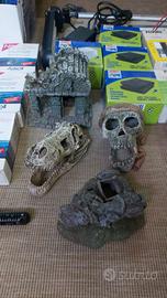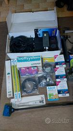 Vendo in blocco vario materiale per acquari, gruppo accensione per neon, cuffie per neon, neon, resine per Nitrati e Fosfati, barre led (la più lunga ha due led da sostituire) diverse spugne, decori e uno sfondo 3d, molto materiale è nuovo ancora in scatola.