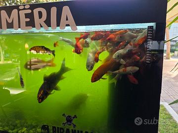 vendo per chiusura attività, mega, fantastico bellissimo acquario di 1300 litri di acqua. dimensioni: larghezza 280cm; profondità 70cm×70cm×70cm. sottostante tavolo di acciaio inox di 110cm di altezza compreso pompa d'acqua di filtraggio e 40/50 pesci rossi misura da 15 a 40cm. senza trasporto ne spedizione ritiro su luogo Lignano sabbiadoro. Per informazioni ricevo solo telefonate 349 79 11 0 63 ignoro whatsapp e mail chiedere di sako