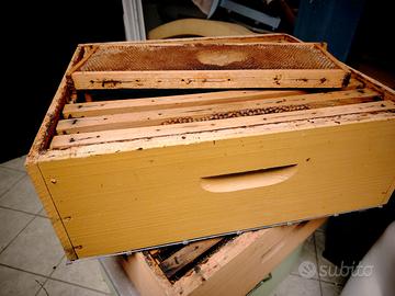 Vendo 2 melari compreso di telai già costruiti a favo, pronti per la produzione. 1 arnia pigliasciami 2 reti produzione propoli 2 vaschette alimenti api Attrezzi vari per apicoltori compreso 2 soffia fumo. Tutto in blocco vendo €. 150