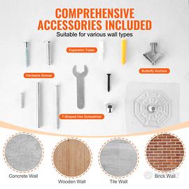 Installazione semplice: il pacchetto include tutti gli accessori necessari e una guida all'installazione. Basta seguire i passaggi, inserire i tubi di espansione nel muro e fissare le schede con viti. Il processo di installazione è semplice, consentendo a una persona di installarlo facilmente in pochissimo tempo.
