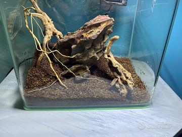 Vendo mini acquario nuovo 22x15x17 già allestito in maniera naturale. Su richiesta anche con piante. È possibile indicare un progetto da realizzare diverso dalla foto.