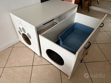 Mobile IKEA SMASTAD trasformato in una pratica e discreta stazione per la lettiera del gatto. Perfetto per chi vuole nascondere la cassetta igienica mantenendo la casa in ordine e senza odori sparsi!
