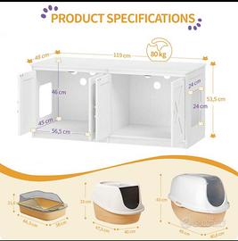 La lettiera presenta due aperture laterali per permettere l’accesso ai gatti.